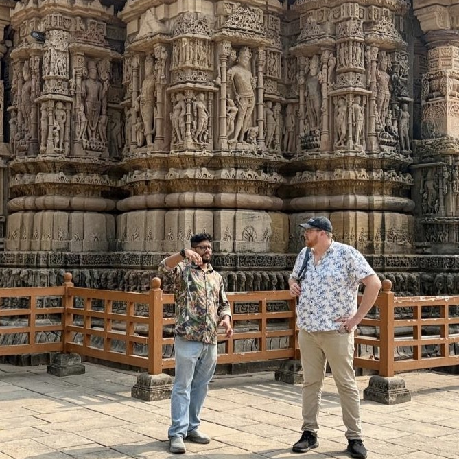 Chris Clarkson (right) with Mr Varun Vyas Associate Researcher – Max Planck Institute for the Science of Human History at the Sun Temple of Modhera in Gujarat.