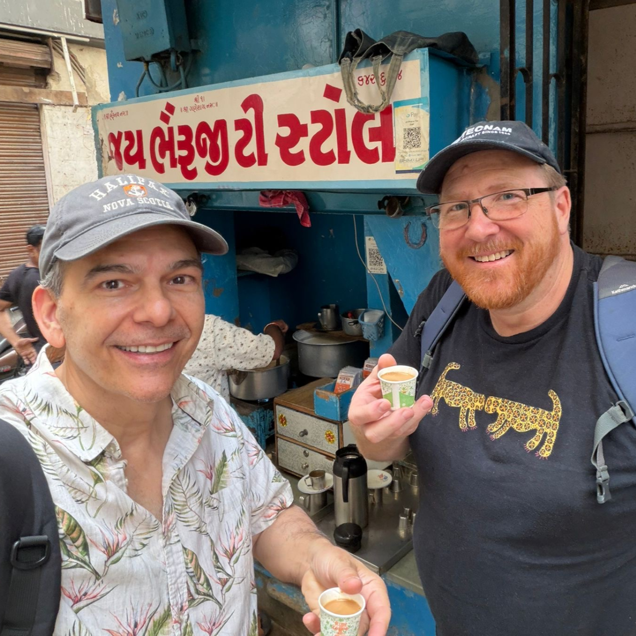 Professors Michael Petraglia and Chris Clarkson enjoying a street side Masala Chai