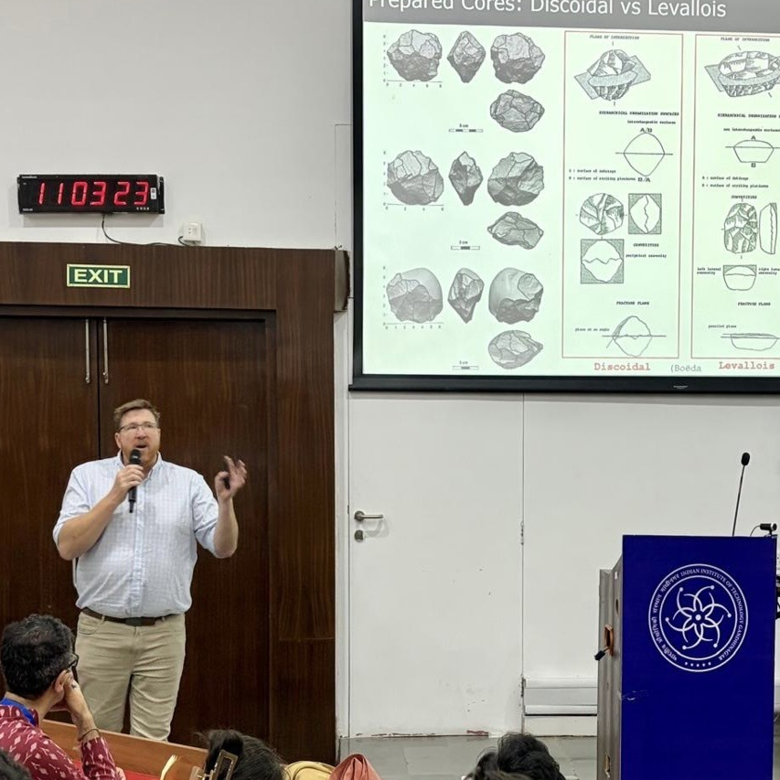 A highlight of the trip was participating in the international symposium “Rethinking Deep Time: Debating Transitions, Origins, and Identities in South Asian Palaeolithic Archaeology”, held at IIT Gandhinagar from 30 January to 2 February 2026. The gathering brought together leading scholars from South Asia and around the world to share research and discuss new perspectives on early stone tool technologies and human evolution.